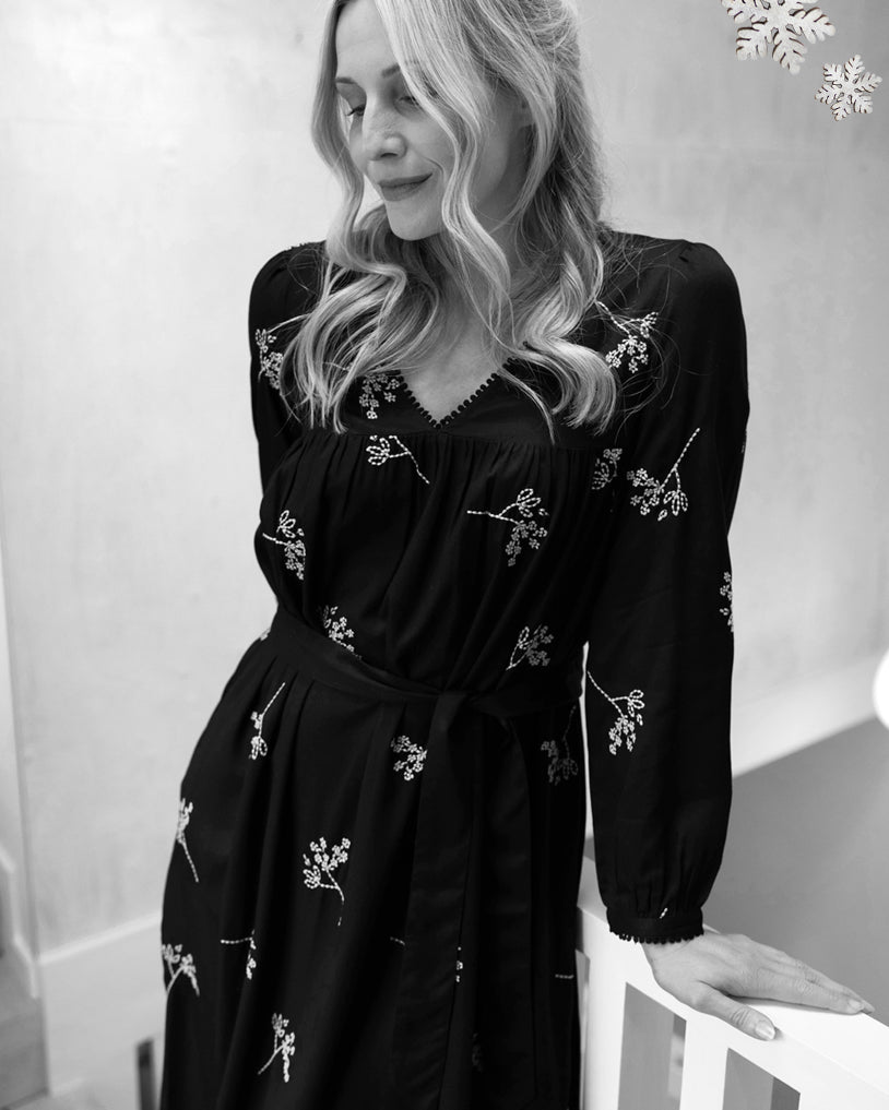 Our latest collection embraces the serene beauty of the season with a palette of striking red, classic black, and frosted textures. From cosy knits to refined dresses, every piece is designed to bring warmth to winter’s cool calm.