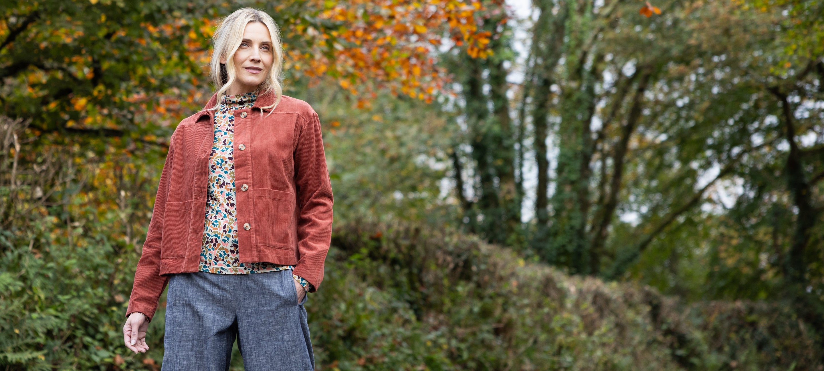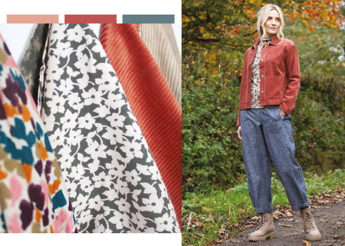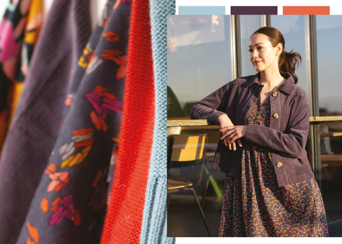 Returning this season is our beautiful Chunky Cord in soft colours such as Plum and Rose in our new, easy Gathered Cuff Tunic Dress shape and best-selling Cropped Trouser.