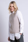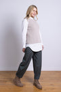 This beautiful knitted vest is the ultimate in cosy sophistication. The blend of organic cotton and wool creates a luxuriously soft and insulating fabric that will keep you comfortable in any climate. Slip it on over a button-down for the office, or pair it with your favorite jeans for a polished weekend look. With its classic silhouette and neutral hue, this vest is a wardrobe essential that will elevate your style effortlessly.