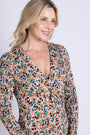 This dress is more than just a pretty face - the Ecovero fabric is not only soft and comfortable, but it's also environmentally-friendly, made from renewable wood pulp sources. The vibrant print and feminine knot detail add a touch of elegance, while the long sleeves and midi length keep you covered in style. Whether you're heading to the office or a night out, this dress is sure to make you look and feel your best.
