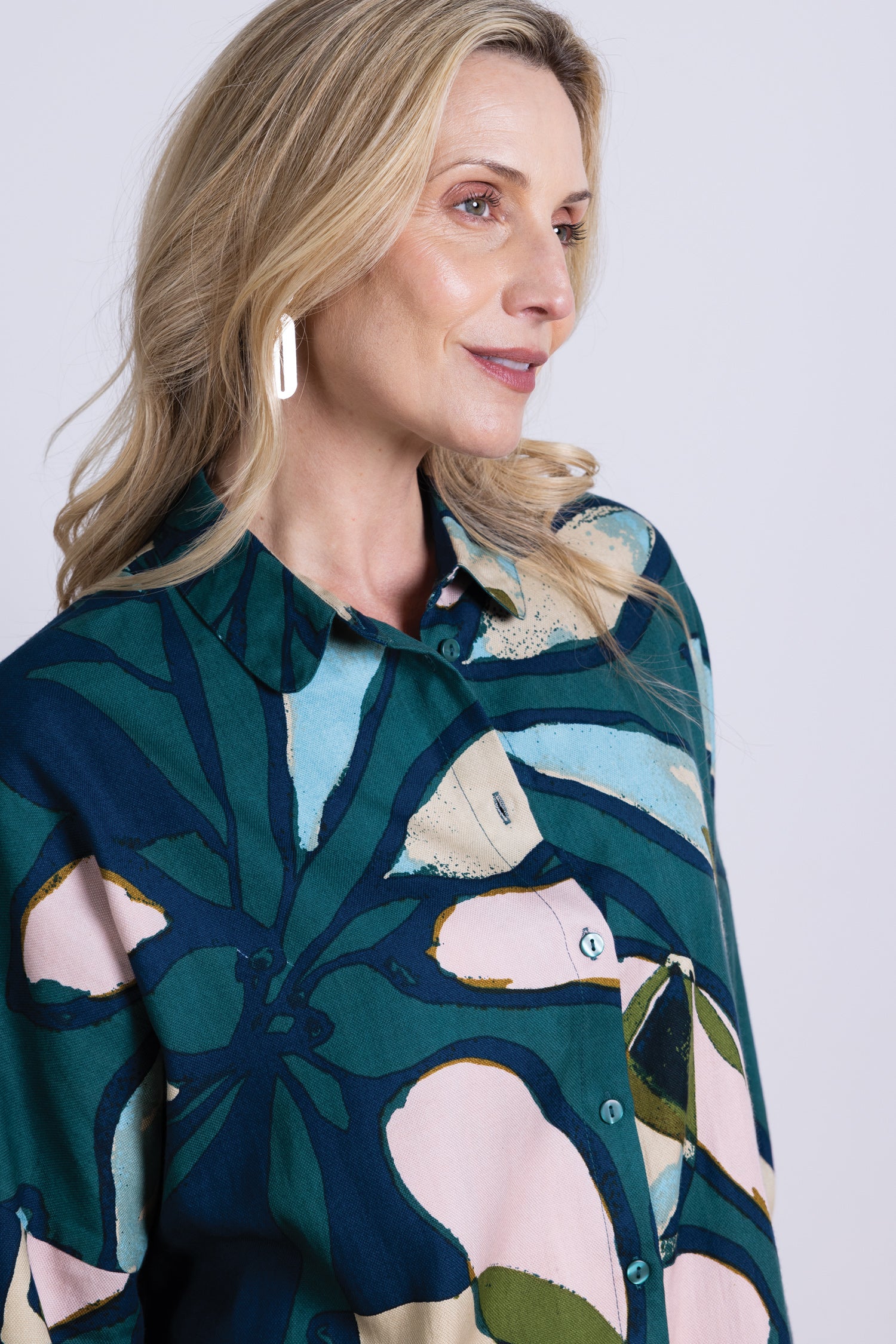 This versatile shirt is a wardrobe essential for the modern, fashion-forward woman. Whether you're running errands, grabbing coffee with friends, or heading to the office, this oversized Tencel shirt will have you looking and feeling your best.