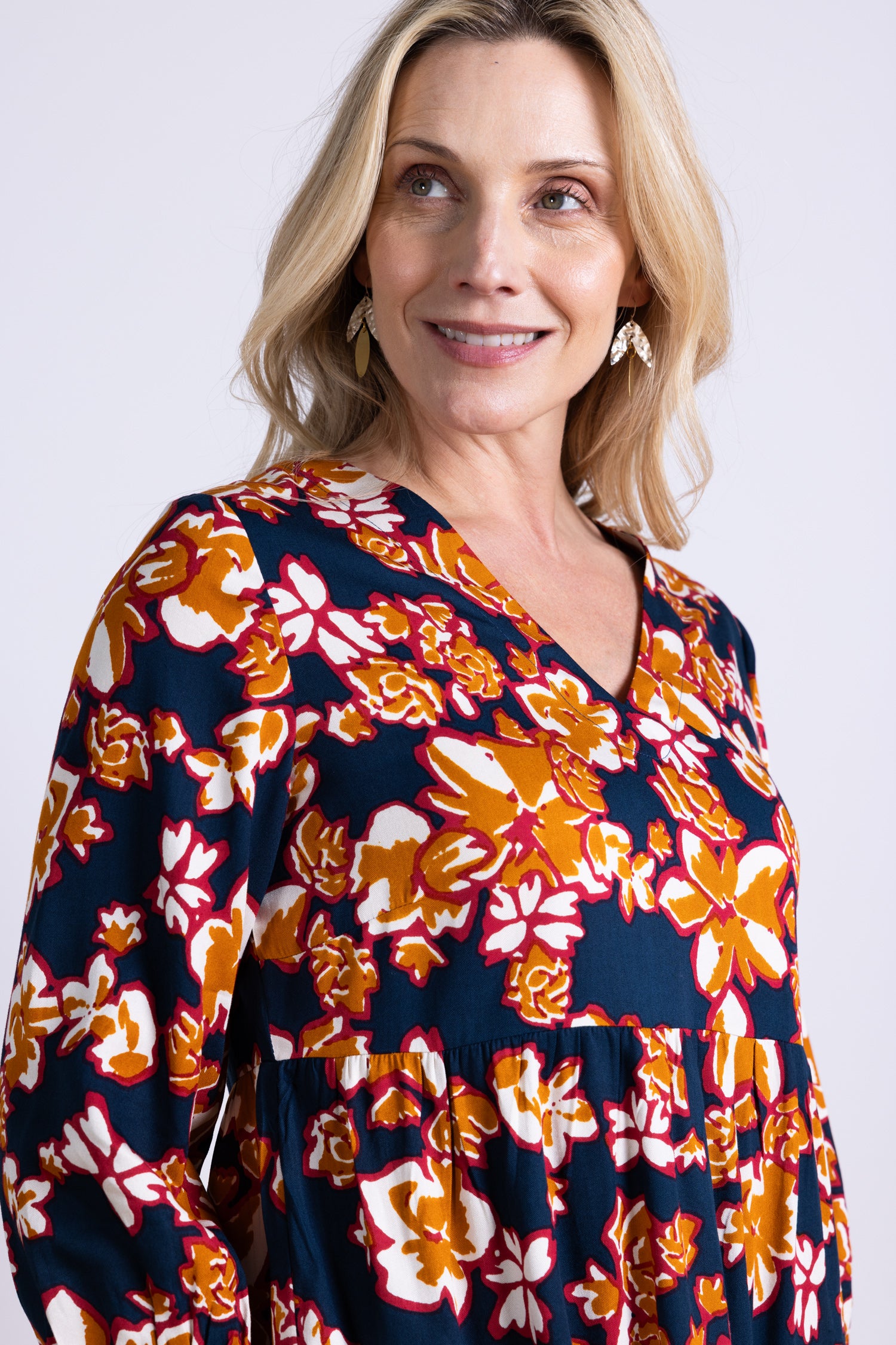 This dress is a canvas for your personal style. The bold, colourful Matisse print makes a statement, while the puff sleeves and flowing viscose twill create a feminine, figure-flattering silhouette. Functional side pockets add a practical touch, ensuring you look and feel your best all day long.