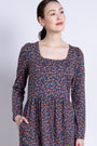This dress is perfect for the modern, eco-conscious woman who seeks fashion that aligns with her values. Crafted from premium organic cotton, it's a sustainable choice that allows you to look and feel your best. Embrace the beauty of effortless elegance with this dress. The rich, dark base and vibrant print create a striking contrast, while the tiered design flatters your figure. Thoughtful details like the pockets and square neckline make this piece both stylish and practical. Slip into this dress and let your confidence shine.