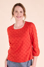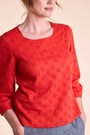 Our Blouson sleeve top has a beautiful embroidered floral pattern. It is an easy-fit top with gathered sleeve detail, paired with some trousers for a daytime look. Available in two colours: Tomato & White.