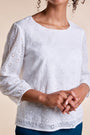 Our Blouson sleeve top has a beautiful embroidered floral pattern. It is an easy-fit top with gathered sleeve detail, paired with some trousers for a daytime look. Available in two colours: Tomato & White.