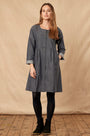 This button through Tunic Shirt Dress has delicate pewter half dome buttons and gathered detail at the front and back waist for the finishing touch. Scooped out pockets are practical and full length sleeves make this garment perfect for layering. Made from 100% Cotton Chambray makes this shirt dress softer than traditional, whilst capturing the same versatility.