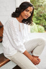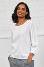 This Lace Top is a dreamy addition to any wardrobe. Crafted from soft 100% cotton Slub, featuring three quarter length sleeves and available in both classic white and sumptuous camomile, this floaty top is the ultimate in laidback style. Lace sleeve inserts combined with bracelet length sleeves and gathered cuffs add the right amount of detail to this cute top.