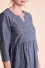 Our bestselling summer cotton chambray fabric returns to our collection to give you a smart yet lightweight alternative to the classic summertime denim look. The Chambray Dress has three-quarter sleeves and practical side pockets to make this an easy-to-wear style, perfect for the office. A gathered waist and notch neck make this a sophisticated style we know youll love.