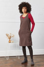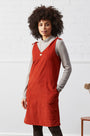 This tie shoulder pinafore has been crafted using cotton needlecord and also has spacious side pockets and a v-neckline for a contemporary feel. It comes in two colours and looks great over a printed top, paired with some tights and your favourite black boots.