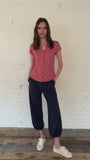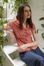 Our best-selling collared top is back again, this season crafted using our petal burst print and finished with biodegradable coconut buttons. Made with a timeless nehru collar, this top makes sustainable dressing an effortless choice.