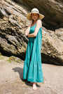 Beach Vibes? Weve got you covered. Explore this stunning new oversized sundress made of 100% Cotton Poplin for that lazy day at the beach. Scoop square neck with gathered detailing, tie shoulders, tiered hem and tie waist belt for that extra shape. And of course, it has pockets too. In two stunning colours: Lipstick and Emerald.