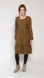 We love tunic dresses; presenting this beautifully crafted tiered tunic dress with contrast sleeve cuffs, it is a perfect daywear dress. Round neck, buttoned front, long sleeves and paired with our Bamboo tights and boots for the smart look.