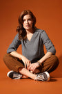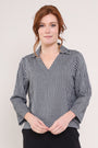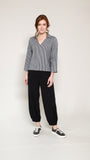 Another masterpiece in 100% cotton rippled check is this easy collar top with a v neckline. This three quarter sleeve top is easy and stylish when paired with our GOTS organic cotton yoga trousers.
