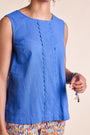 Our popular 100% cotton slub vest has returned, in classic white and summery china. Featuring scalloped trim detailing in the front, this vest is a great addition to your summer essentials. Available in two colours: China and white