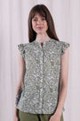 Introducing our elegant Frill Shirt Top, made from sustainable Ecovero fabric with a beautiful savannah print. This top features frill sleeves, adding a touch of femininity to your outfit. Pair it with our Verdant Slim Leg Trousers for a chic and sophisticated look, or with our Wide Leg Jeans for a more casual vibe. Enhance your wardrobe with this versatile and stylish top that is not only fashionable but also eco-friendly.