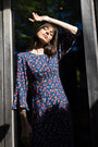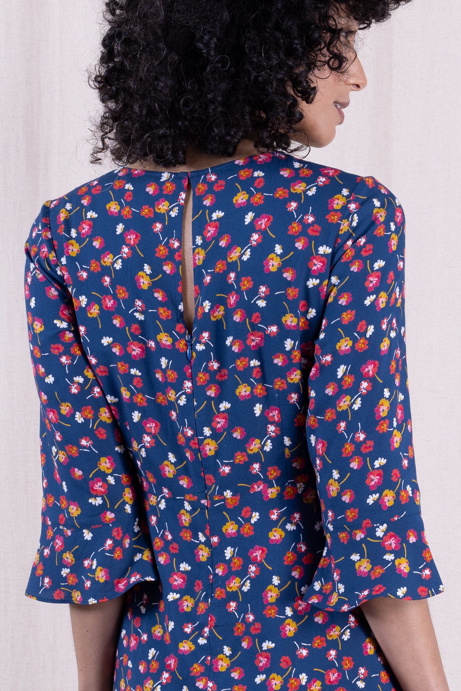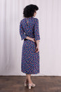 Look at our stunning Viscose Fluted Sleeve Midi Tea Dress. This elegant dress features a classic round neck and flattering 3/4 length sleeves. The beautiful pansy print adds a touch of sophistication, while the midi length makes it perfect for special occasions. Whether you're attending a wedding or a cocktail party, this dress is sure to make a statement. Add this must-have piece to your collection for a timeless and chic look.