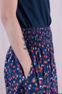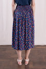 This versatile piece features an elastic waist for a comfortable fit, convenient pockets for functionality, and a beautiful pansy print for a touch of charm. With its flattering midi length, this skirt is perfect for any occasion, from running errands to a casual lunch with friends. Stay stylish and chic effortlessly with our Midi Skirt.