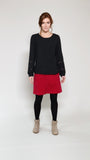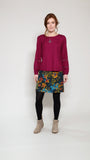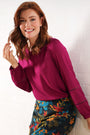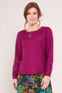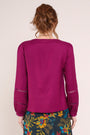 A beautiful lace trim top in classic raven and pretty mulberry colour, with long sleeve ladder lace detail. This relaxed fit top is crafted from 100% sustainable viscose Team with our range of twisted cotton trousers or our cord mini skirts for that smart look.