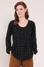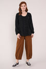 Another fresh, new style to add to our collection, this seersucker check blouse with a scoop neck, button through front and raglan sleeves, made from viscose and cotton this is a lovely soft and breathable fabric. Pair it with our twisted cotton trousers for that perfect look you need.